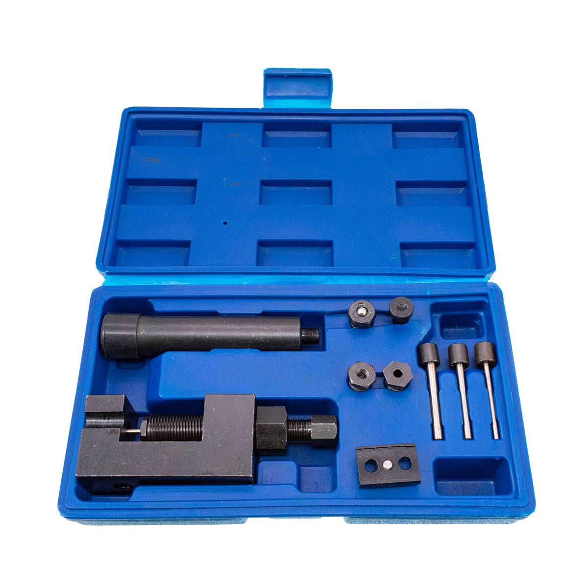 Профессиональный инструмент предназначен для расклепывания и заклепывания цепи. Для удобства хранения упакован в пластиковый кейс.