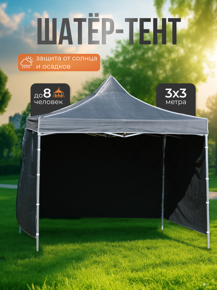 Шатер-палатка тент складной 3 х 3 м для различных мероприятий: эвентов, маркетов, спортивных соревнований, походов, вечеринок, свадеб.